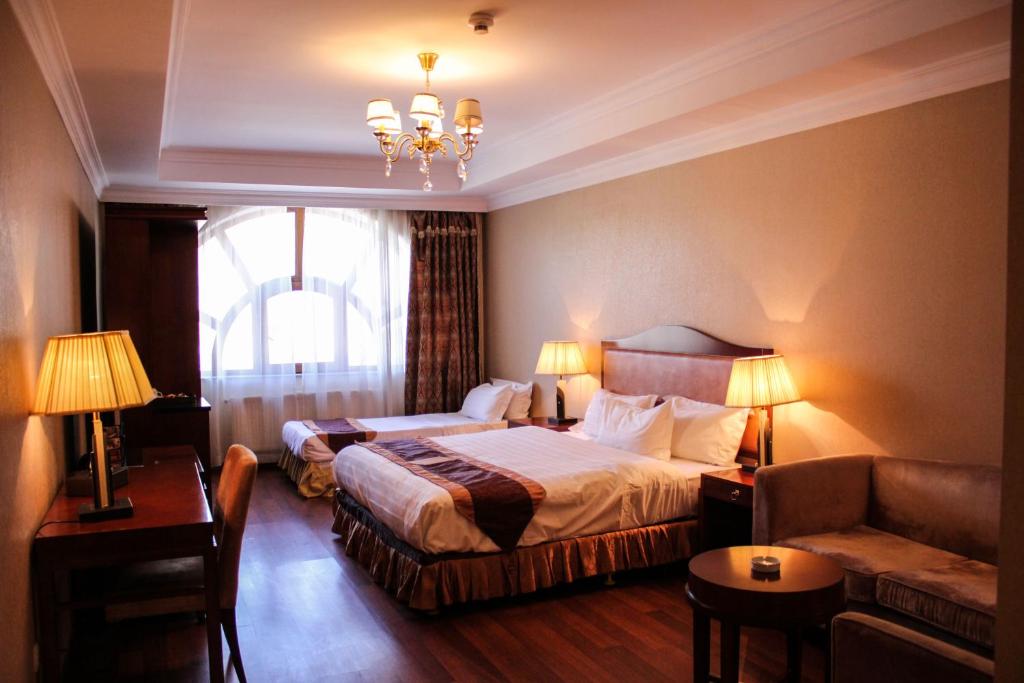 Otel mərmər və daşla dəb – dəbə ilə bəzədilmişdir. Sheki Palace Oteli müasir ofis avadanlıqlarını təmin edir. İş adamları yeni ofis avadanlıqları, internetə çıxış, və iclas otağı ilə təmin olunur.